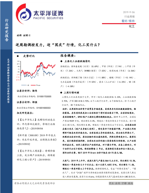 【太平洋证券】【20190906】20190906-太平洋-化工行业周报:逆周期调控发力,迎“国庆”行情,化工买什么?-39页