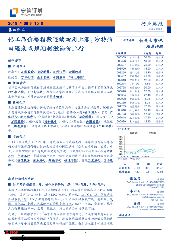 【安信证券】【20190915】20190915-安信证券-基础化工行业周报:化工品价格指数连续四周上涨,沙特油田遇袭或短期刺激油价上行-8页