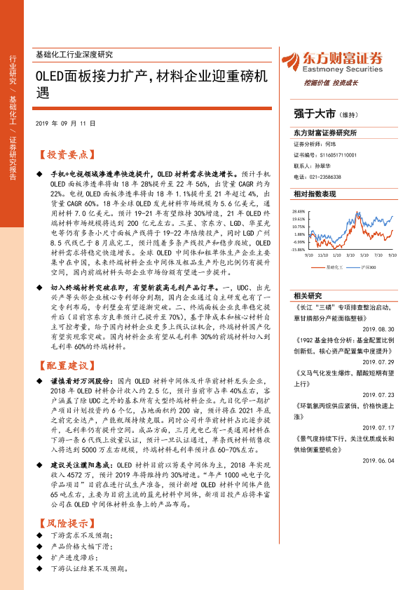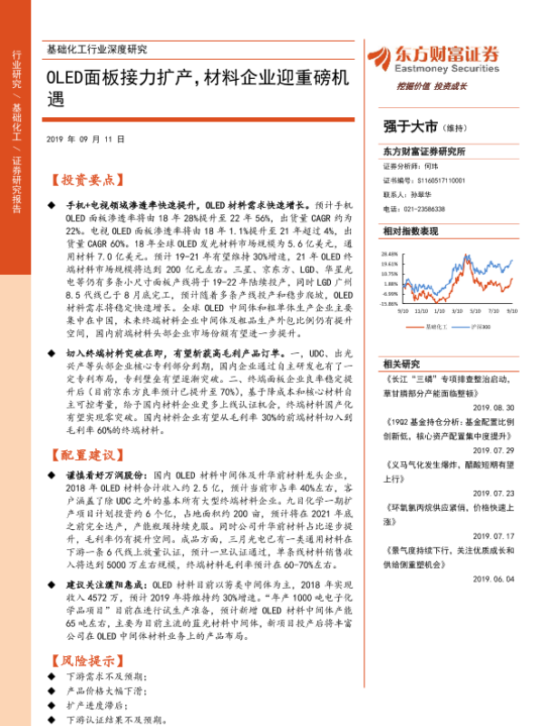 【东方财富证券】【20190911】基础化工行业深度研究:OLED面板接力扩产,材料企业迎重磅机遇-34页