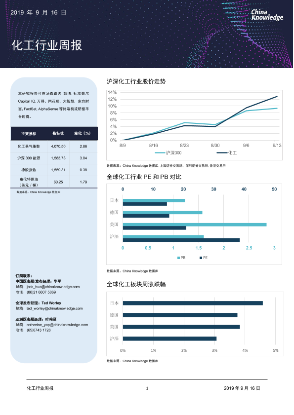 【China Knowledge】【20190916】20190916-China Knowledge-化工行业周报-18页