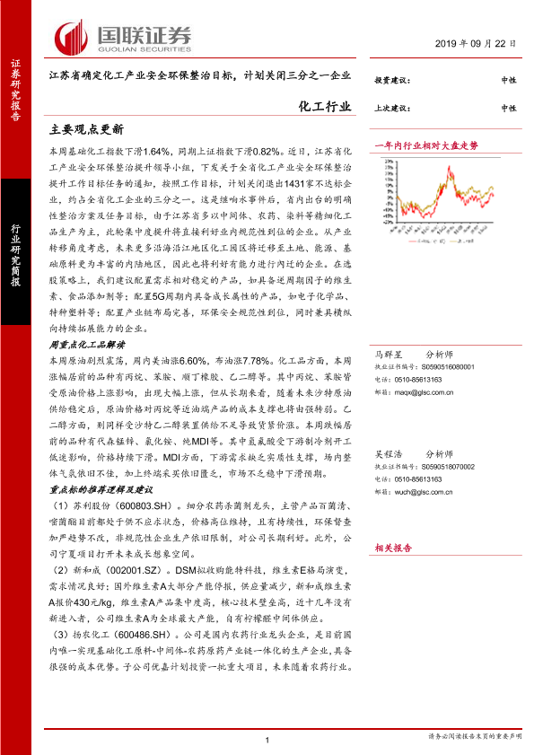 【国联证券】【20190922】江苏省确定化工产业安全环保整治目标,计划关闭三分之一企业-17页