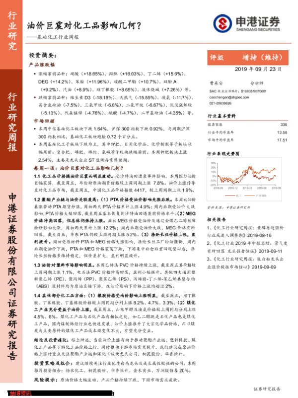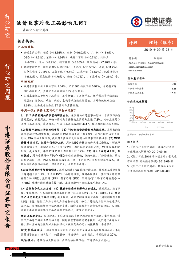 【申港证券】【20190923】20190923-申港证券-基础化工行业周报:油价巨震对化工品影响几何?-21页