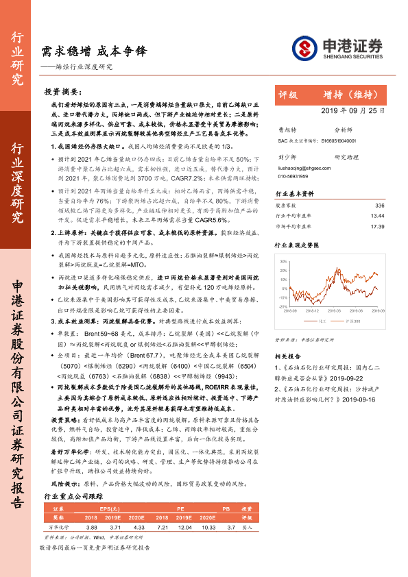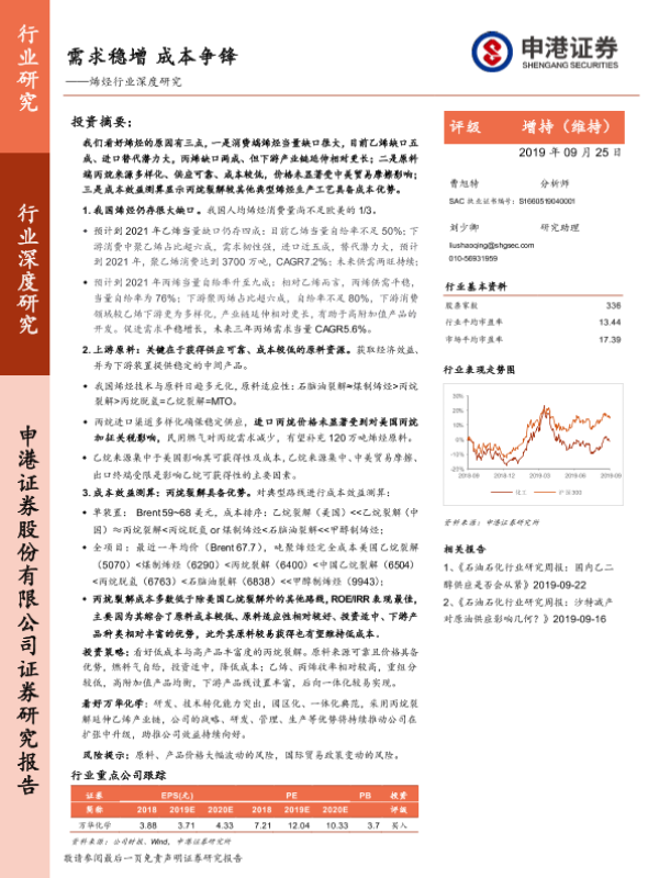 【申港证券】【20190925】20190925-申港证券-烯烃行业深度研究:需求稳增 成本争锋-35页