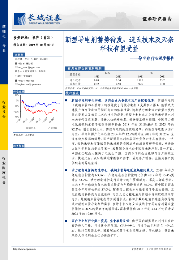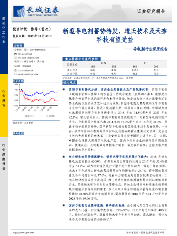 【长城证券】【20191009】20191009-长城证券-导电剂行业深度报告:新型导电剂蓄势待发,道氏技术及天奈科技有望受益-26页