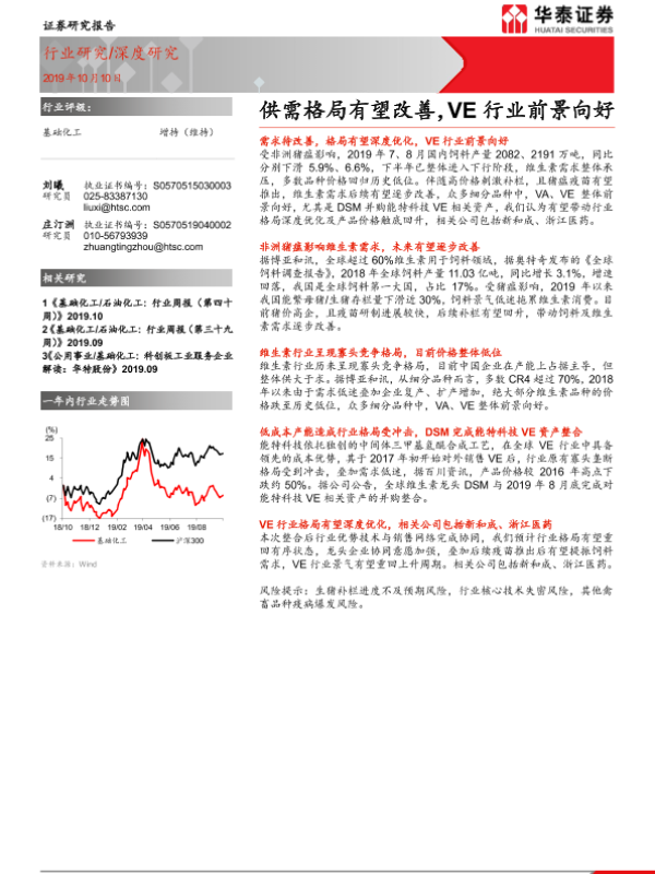 【华泰证券】【20191010】基础化工:供需格局有望改善,VE行业前景向好-19页