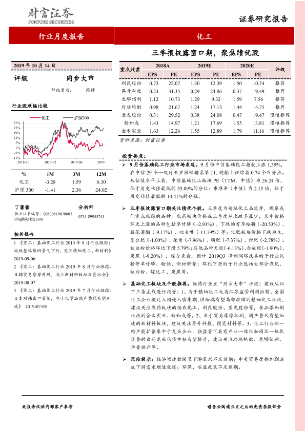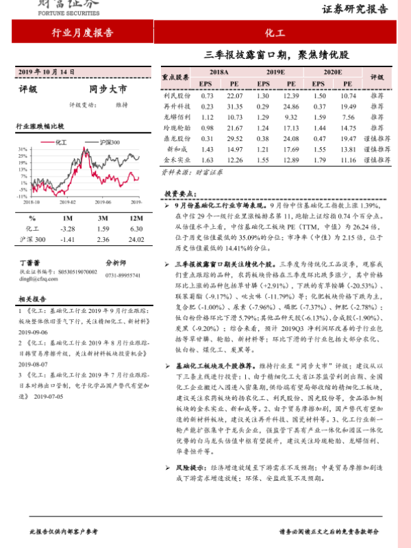 【财信证券】【20191014】20191014-财信证券-化工行业月度报告:三季报披露窗口期,聚焦绩优股-10页
