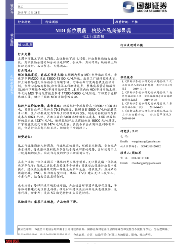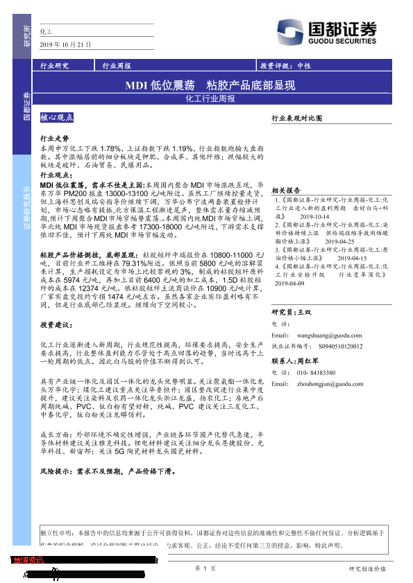 【国都证券】【20191021】20191021-国都证券-化工行业周报:MDI低位震荡 粘胶产品底部显现-2页