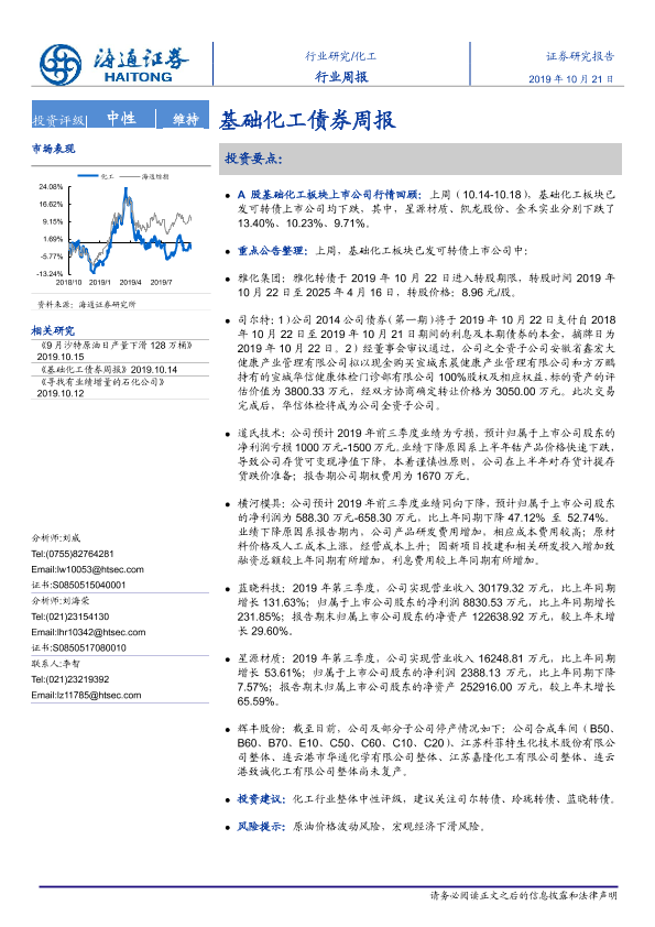 【海通证券】【20191021】20191021-海通证券-化工行业周报:基础化工债券周报-14页
