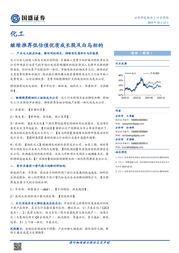 【国盛证券】【20191027】20191027-国盛证券-化工行业周报:继续推荐低估值优质成长股及白马标的-6页