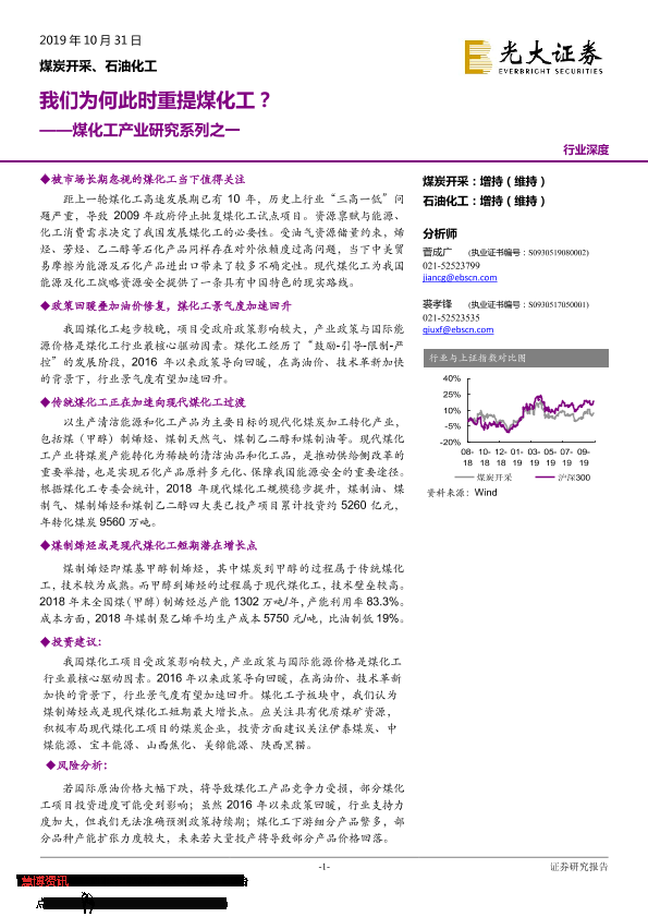 【光大证券】【20191031】20191031-光大证券-煤化工产业研究系列之一:我们为何此时重提煤化工?-34页