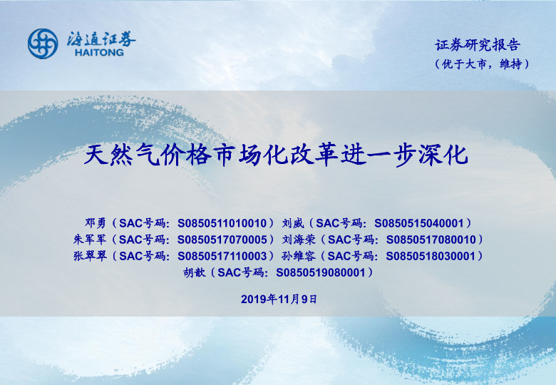 【海通证券】【20191109】化工行业周报:天然气价格市场化改革进一步深化-15页