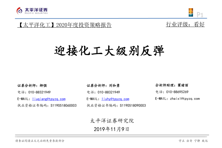 【太平洋证券】【20191109】2020年度投资策略报告:迎接化工大级别反弹-59页