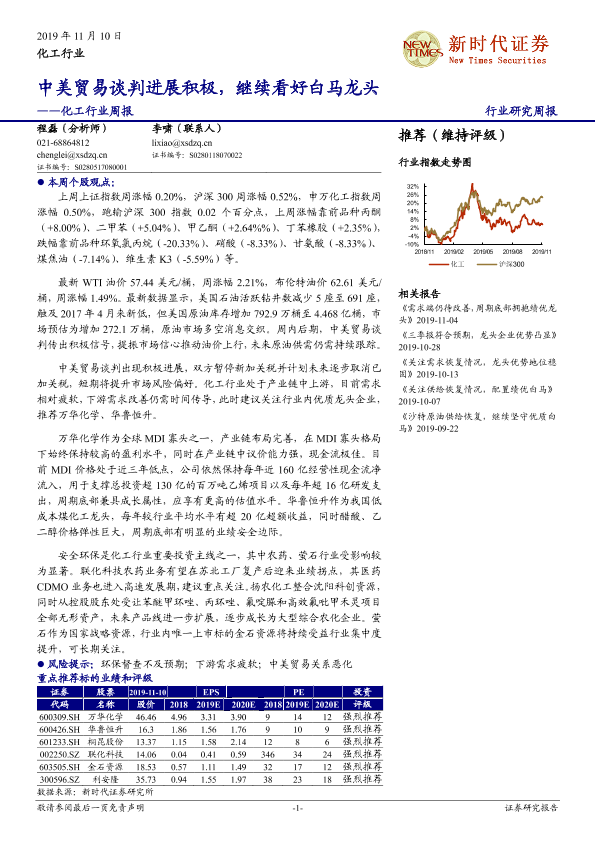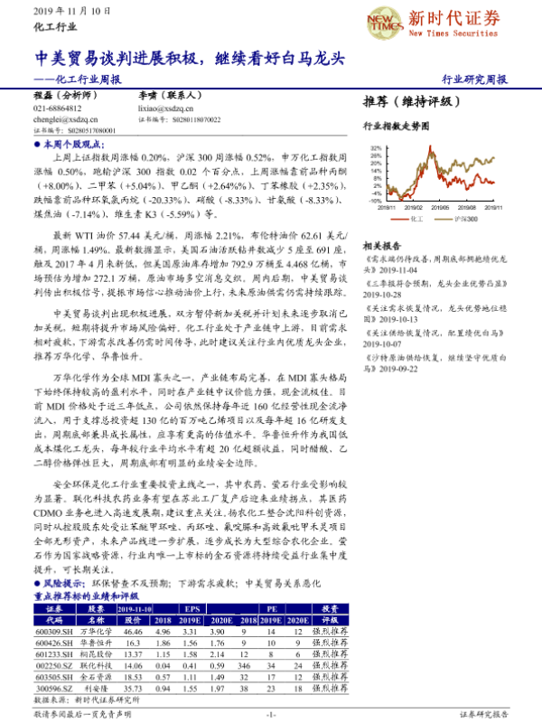 【新时代证券】【20191110】20191110-新时代证券-化工行业周报:中美贸易谈判进展积极,继续看好白马龙头-28页