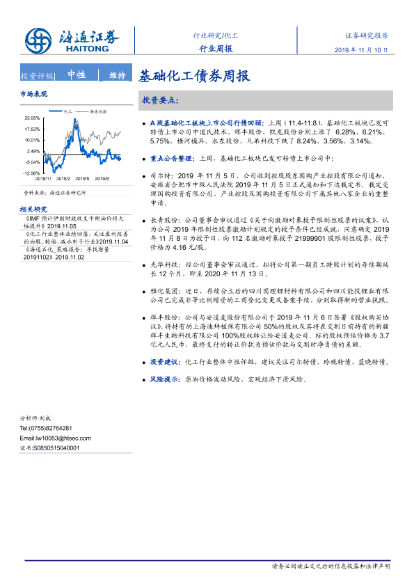 【海通证券】【20191110】20191110-海通证券-基础化工债券周报-13页