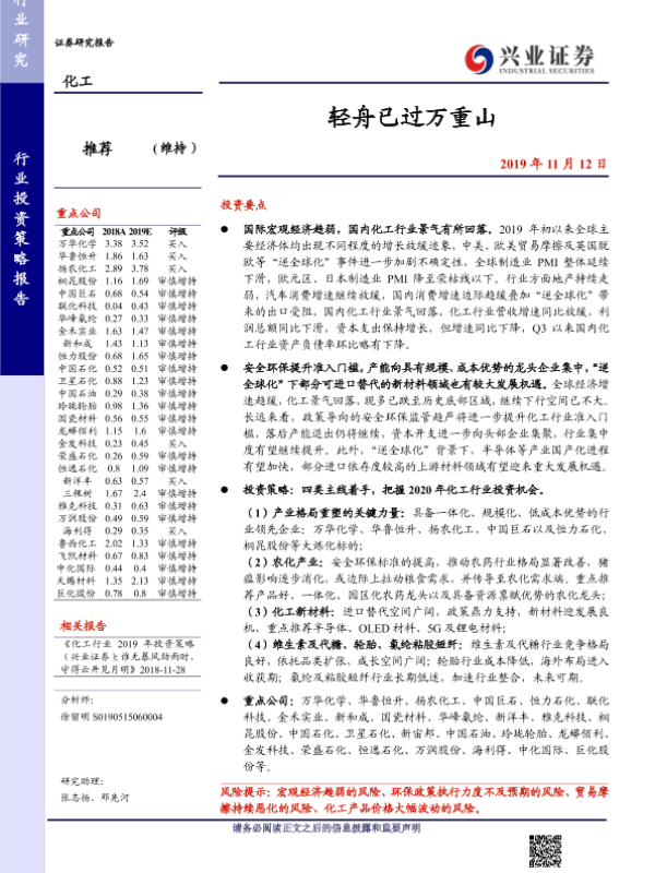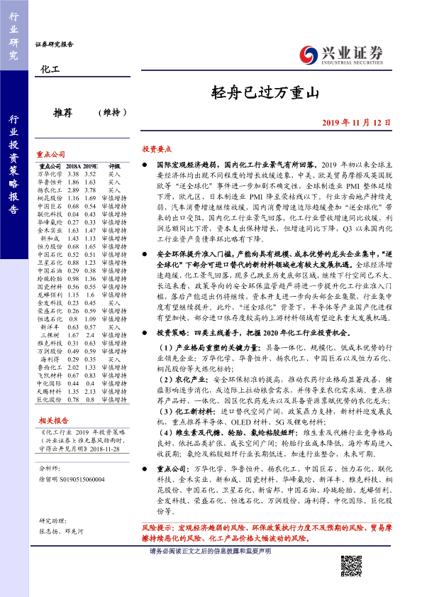 化工行业 安全环保 宏观经济 投资策略 新材料