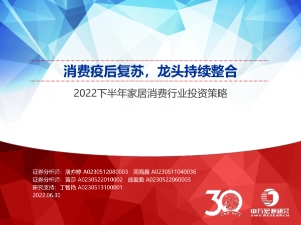 【申万宏源】【20220630】2022下半年家居消费行业投资策略:消费疫后复苏,龙头持续整合-51页