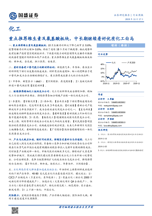 【国盛证券】【20191117】20191117-国盛证券-化工行业周报:重点推荐维生素及氨基酸板块,中长期继续看好优质化工白马-7页