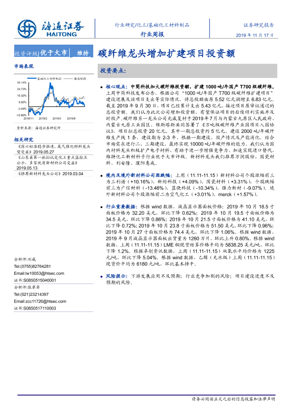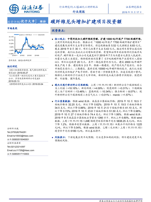【海通证券】【20191117】基础化工材料制品行业周报:碳纤维龙头增加扩建项目投资额-8页