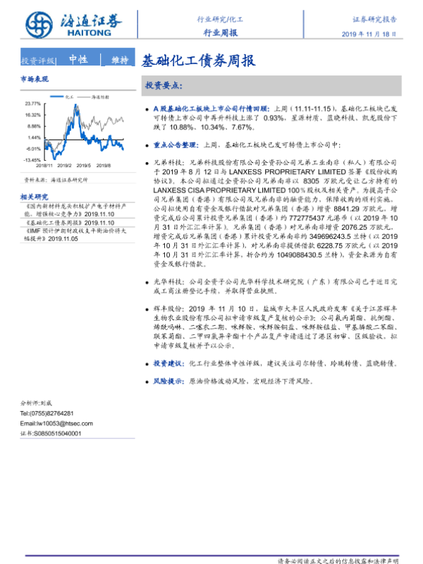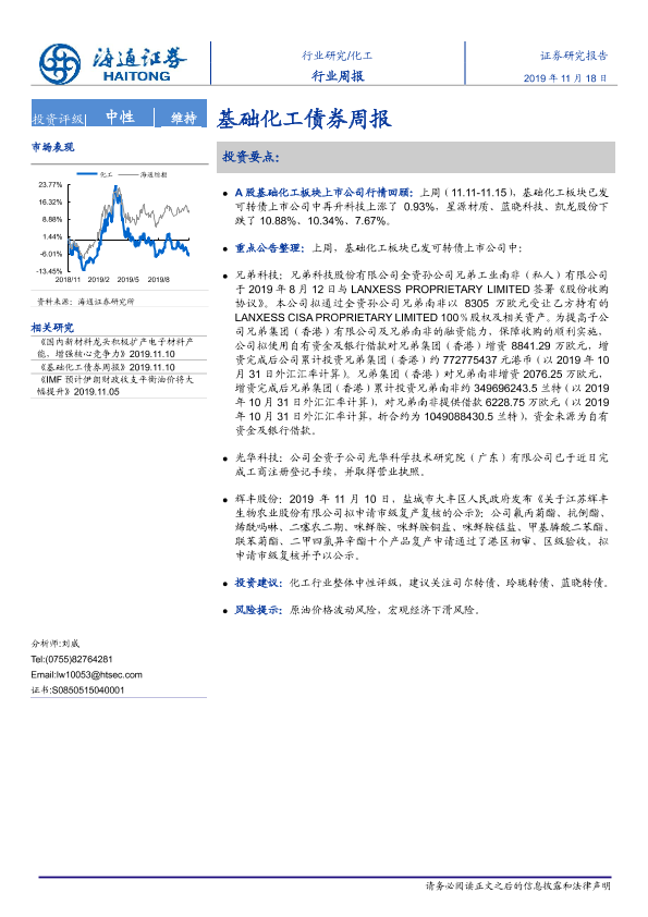 【海通证券】【20191118】20191118-海通证券-基础化工债券周报-13页