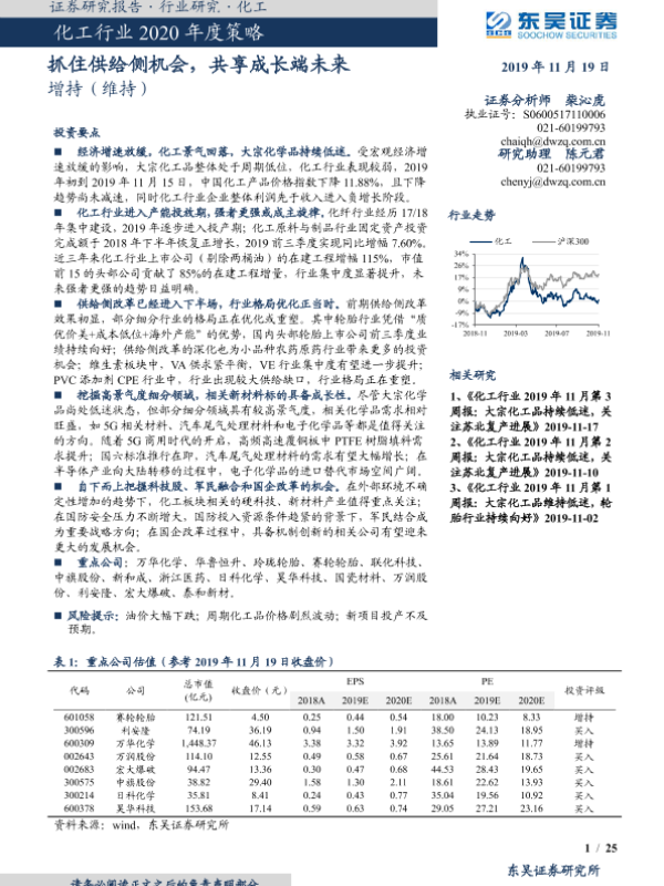 【东吴证券】【20191119】化工行业2020年度策略:抓住供给侧机会,共享成长端未来-25页