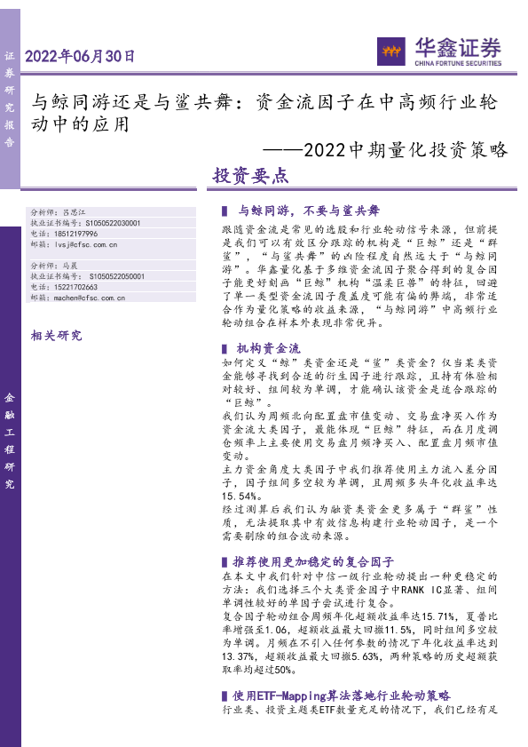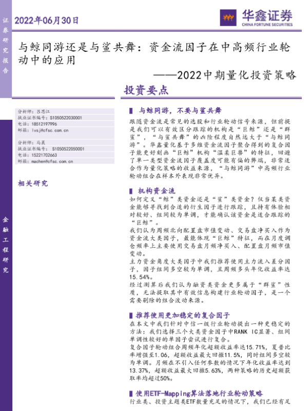 【华鑫证券】【20220630】与鲸同游还是与鲨共舞:资金流因子在中高频行业轮动中的应用——2022中期量化投资策略-28页