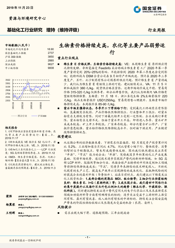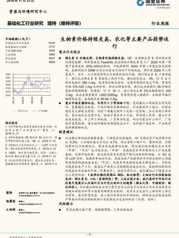 【国金证券】【20191123】基础化工行业研究周报:生物素价格持续走高,农化等主要产品弱势运行-33页