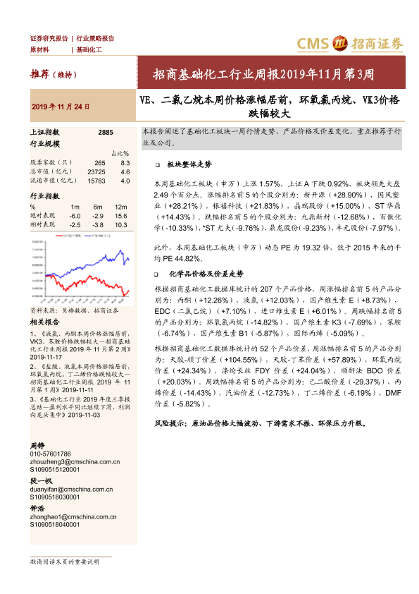 二氯乙烷 价格走势 周报 基础化工 维生素E