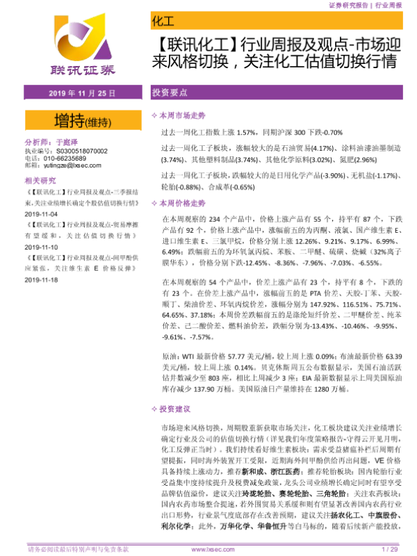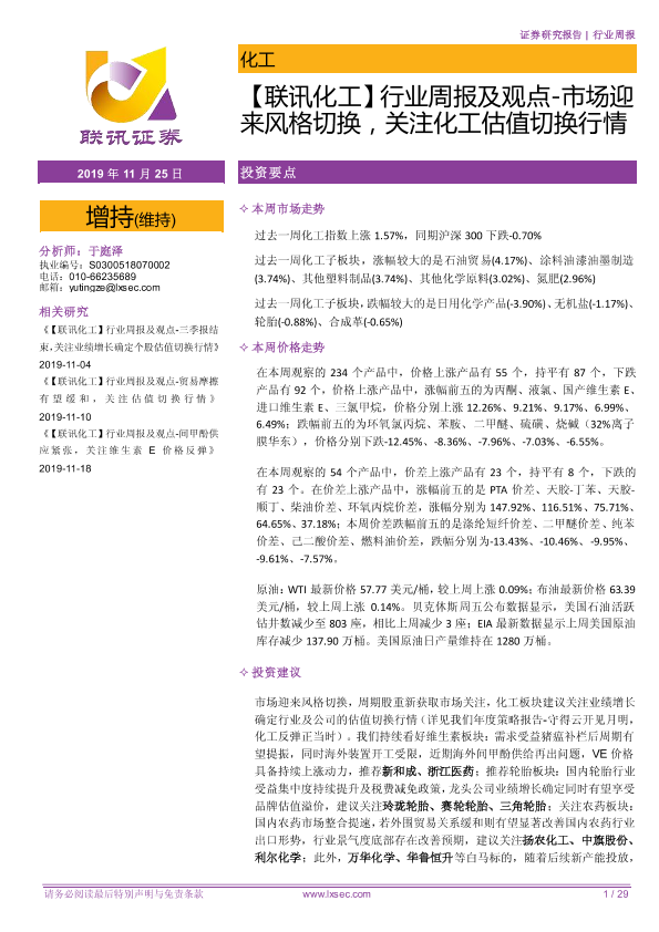 【粤开证券】【20191125】行业周报及观点-市场迎来风格切换,关注化工估值切换行情-29页