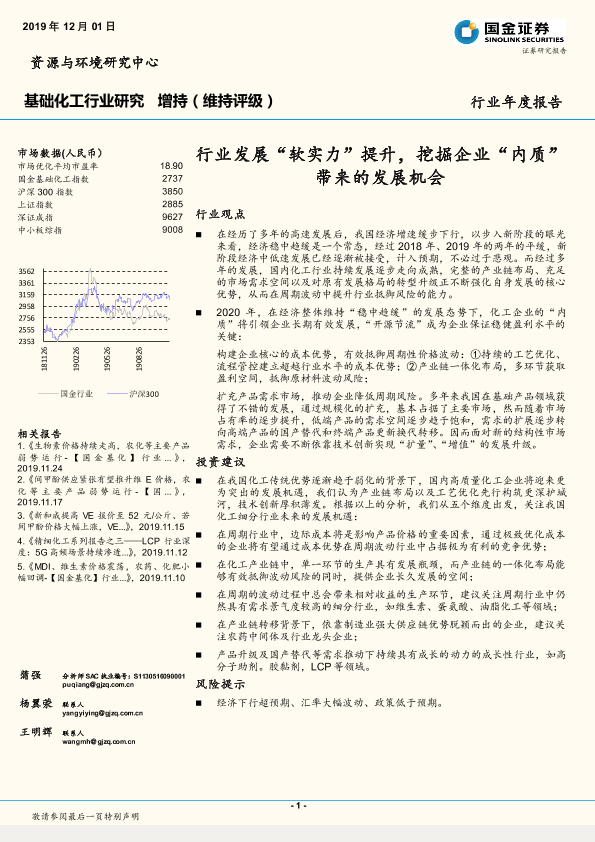 【国金证券】【20191201】基础化工行业研究:行业发展“软实力”提升,挖掘企业“内质”带来的发展机会-36页