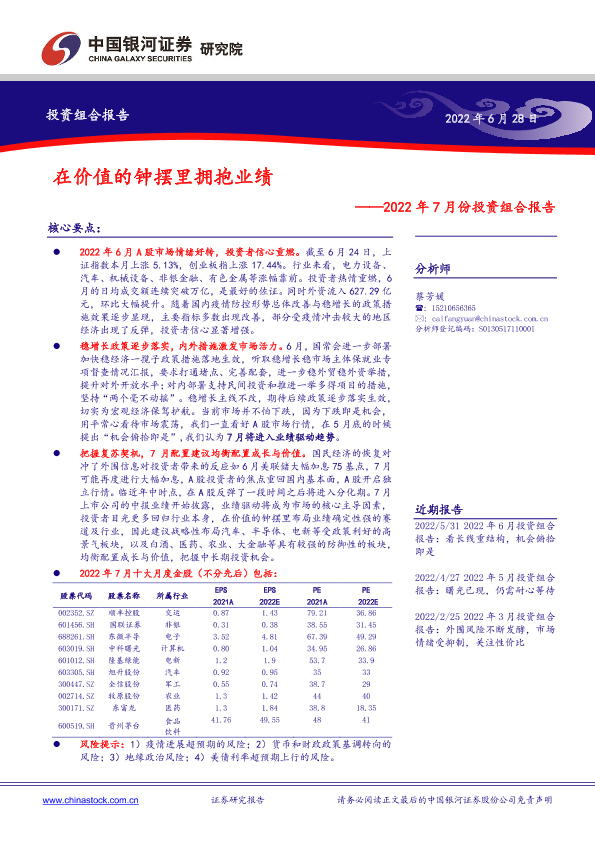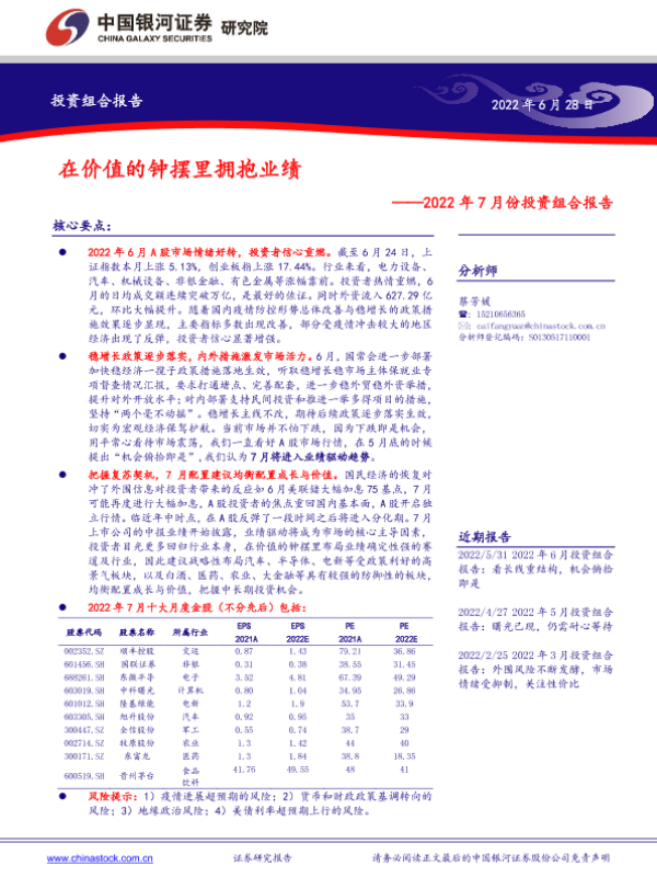 【银河证券】【20220628】2022年7月份投资组合报告:在价值的钟摆里拥抱业绩-21页