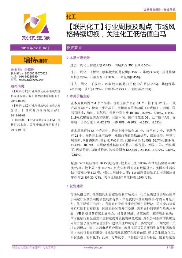【粤开证券】【20191202】行业周报及观点-市场风格持续切换,关注化工低估值白马-29页