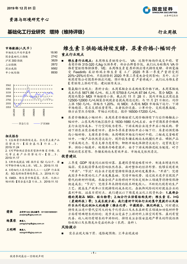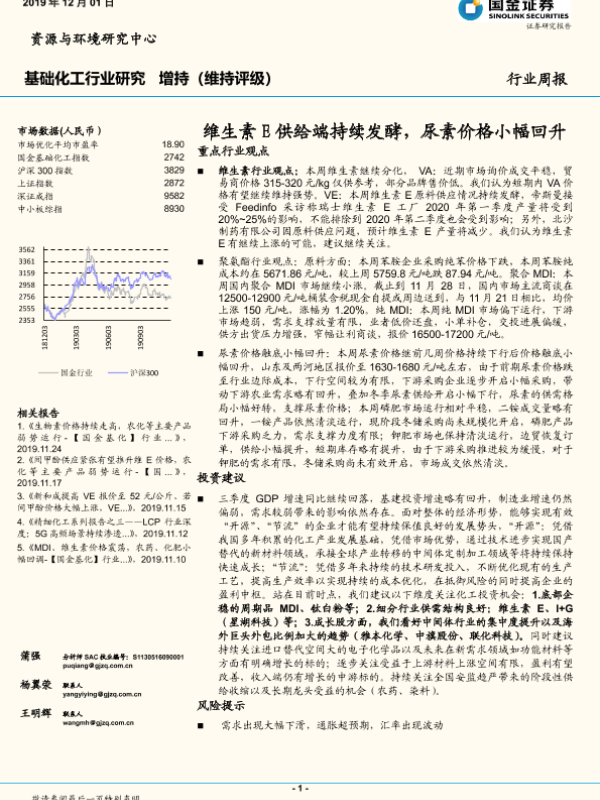 【国金证券】【20191201】基础化工行业周报:维生素E供给端持续发酵,尿素价格小幅回升-32页