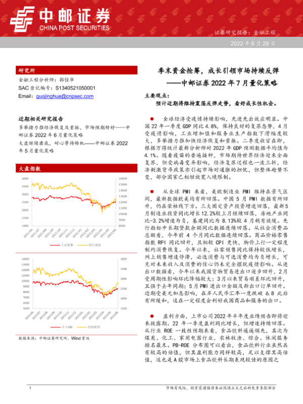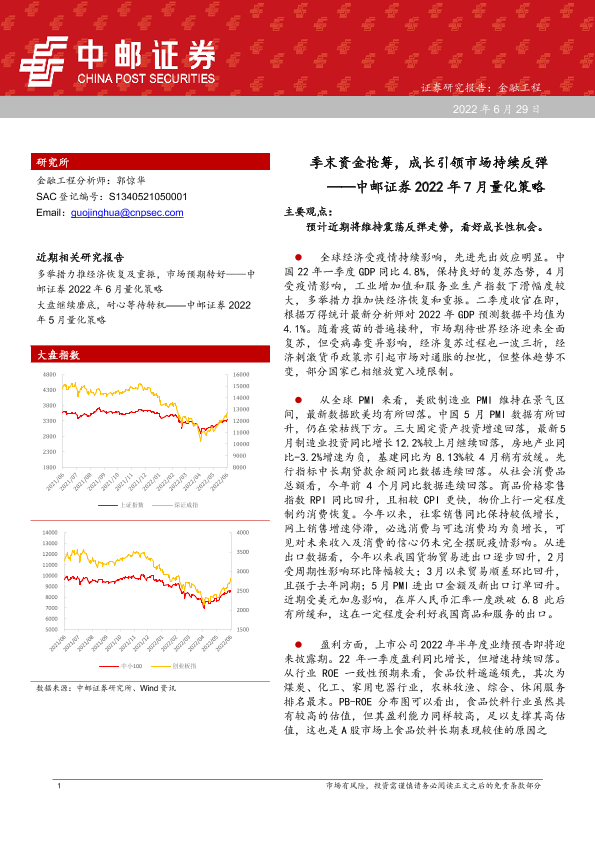【中邮证券】【20220629】2022年7月量化策略:季末资金抢筹,成长引领市场持续反弹-36页