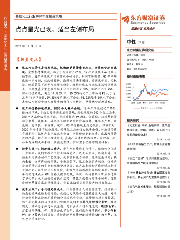【东方财富证券】【20191210】基础化工行业2020年度投资策略:点点星光已现,适当左侧布局-38页