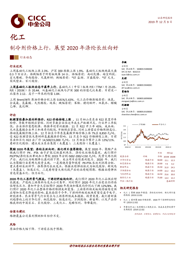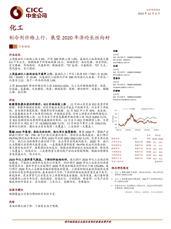 【中金公司】【20191209】20191209-中金公司-化工:制冷剂价格上行,展望2020年涤纶长丝向好-16页
