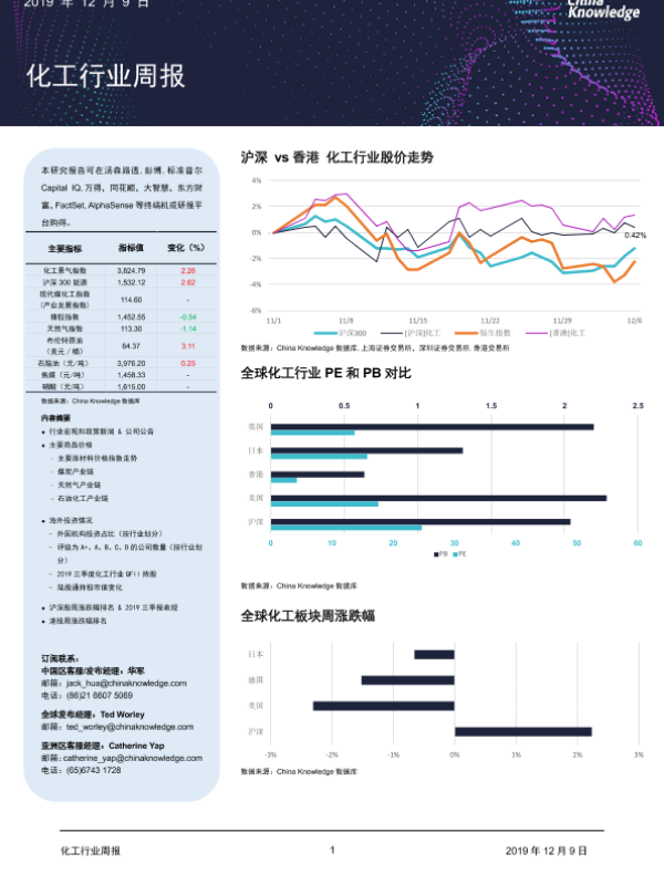 【China Knowledge】【20191209】20191209-China Knowledge-化工行业周报-29页