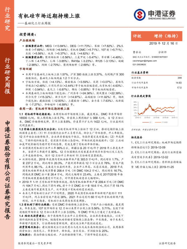 【申港证券】【20191216】基础化工行业周报:有机硅市场近期持续上涨-20页