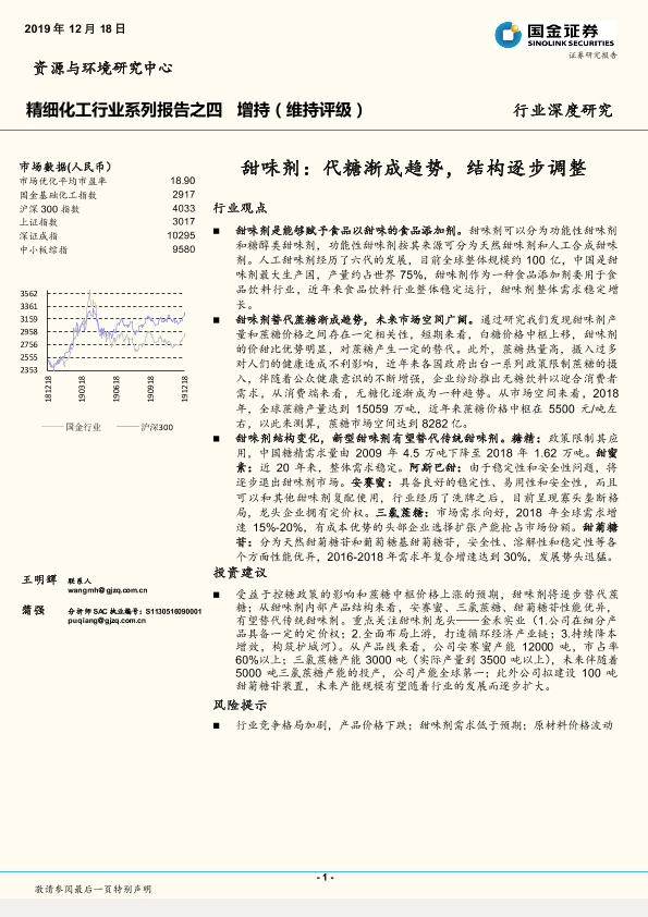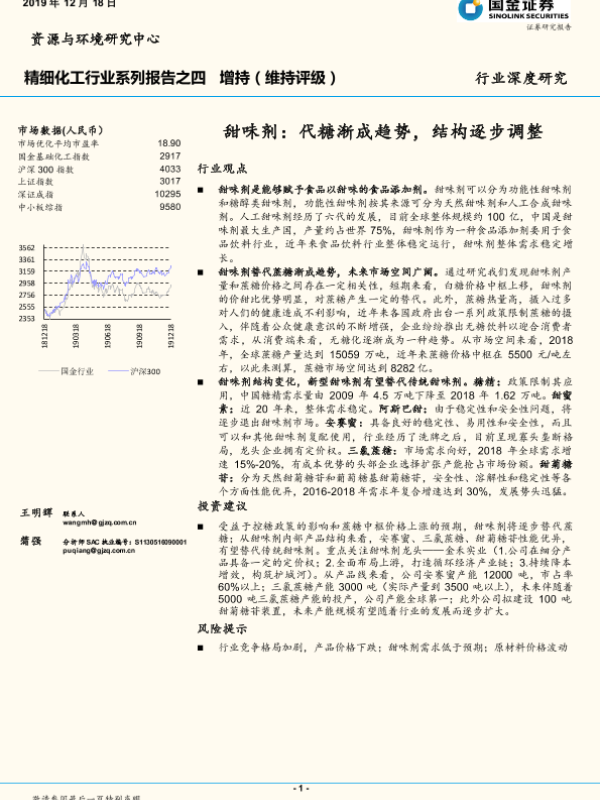 【国金证券】【20191218】精细化工行业系列报告之四:甜味剂:代糖渐成趋势,结构逐步调整-25页