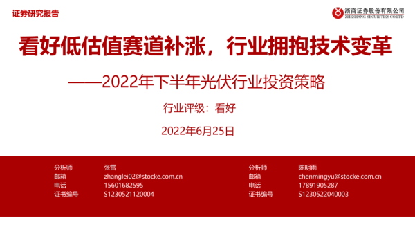 【浙商证券】【20220625】2022年下半年光伏行业投资策略:看好低估值赛道补涨,行业拥抱技术变革-34页