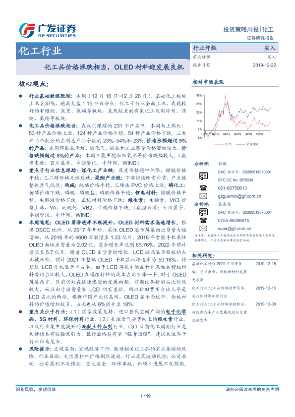 【广发证券】【20191222】化工品价格涨跌相当,OLED材料迎发展良机-19页