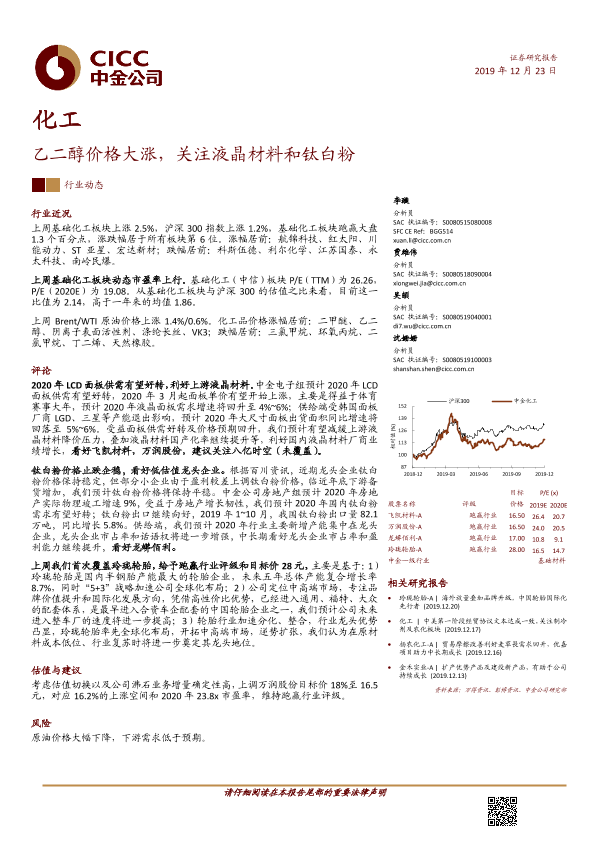 【中金公司】【20191223】20191223-中金公司-化工行业动态:乙二醇价格大涨,关注液晶材料和钛白粉-18页