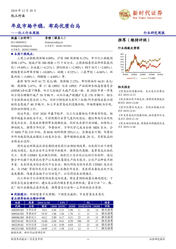 【新时代证券】【20191230】20191230-新时代证券-化工行业周报:年底市场平稳,布局优质白马-29页