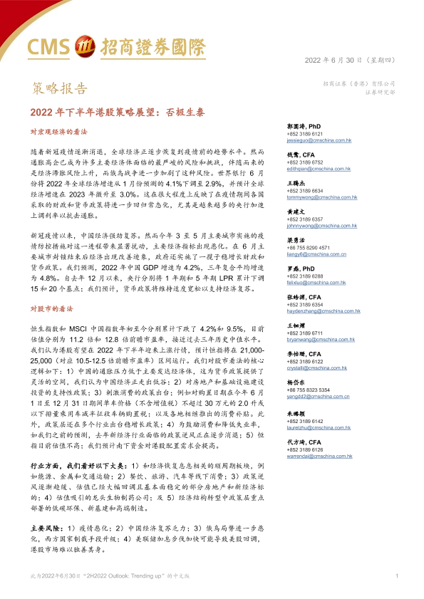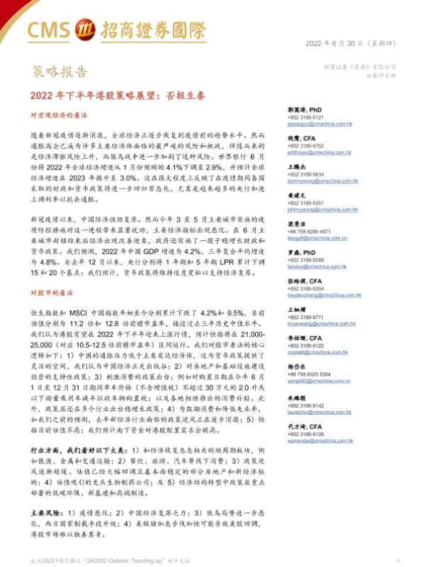 【招商证券国际】【20220630】2022年下半年港股策略展望:否极生泰-81页