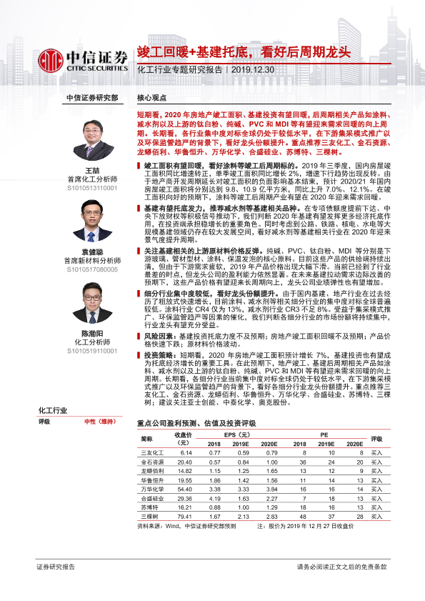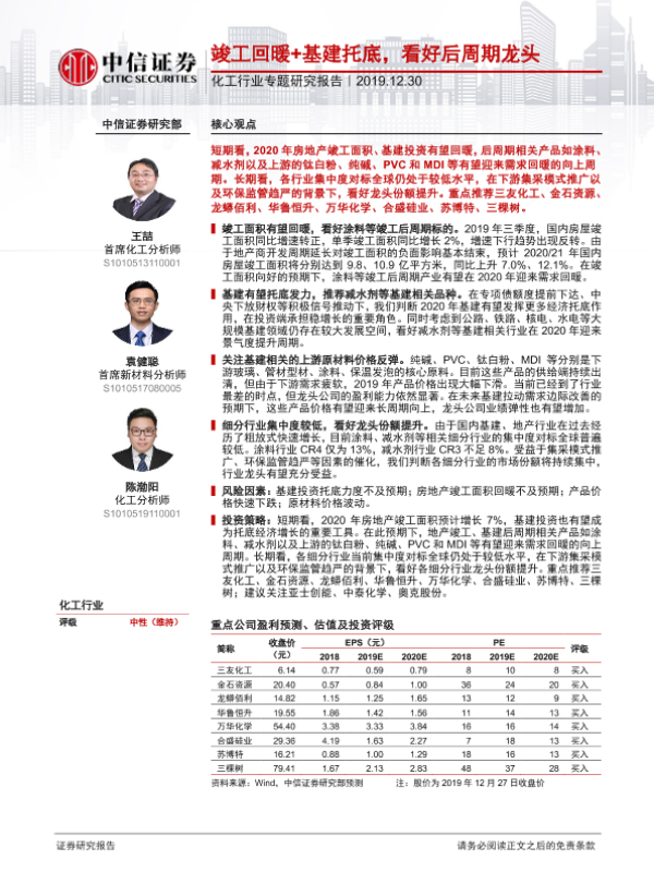【中信证券】【20191230】20191230-中信证券-化工行业专题研究报告:竣工回暖+基建托底,看好后周期龙头-22页