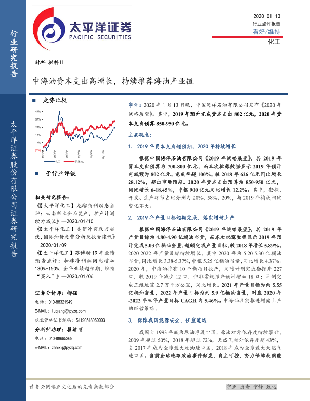 【太平洋证券】【20200113】20200113-太平洋-化工:中海油资本支出高增长,持续推荐海油产业链-4页