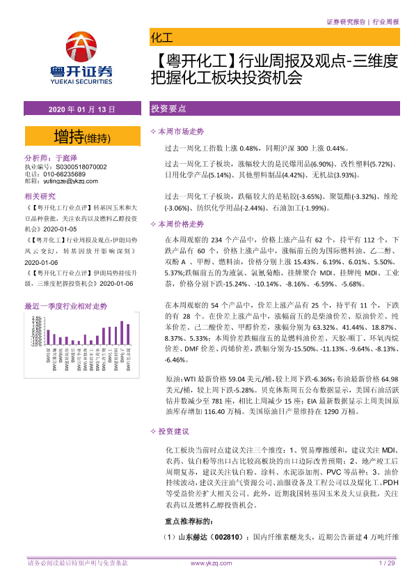 【粤开证券】【20200113】行业周报及观点-三维度把握化工板块投资机会-29页