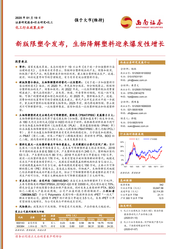 【西南证券】【20200119】化工行业政策点评:新版限塑令发布,生物降解塑料迎来爆发性增长-3页