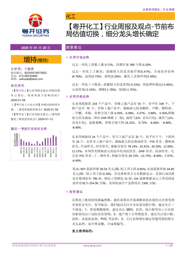 【粤开证券】【20200120】行业周报及观点-节前布局估值切换,细分龙头增长确定-29页