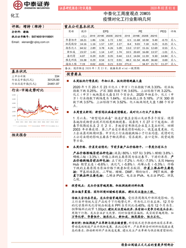 【中泰证券】【20200201】中泰化工周度观点20W05:疫情对化工行业影响几何-35页