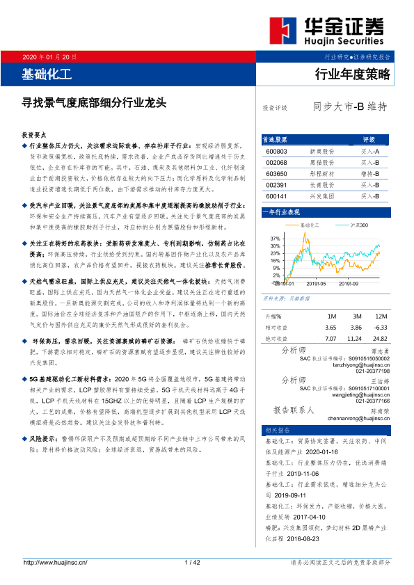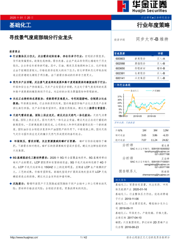 【华金证券】【20200120】基础化工行业年度策略:寻找景气度底部细分行业龙头-42页